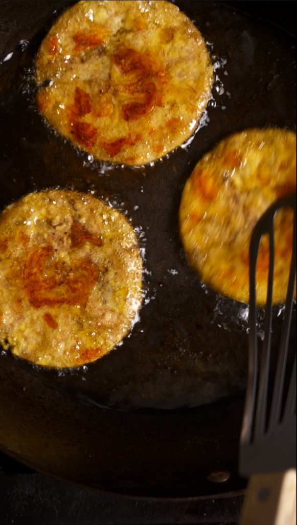 Shallow fry them in a skillet over medium low heat until fully cooked but not browned.