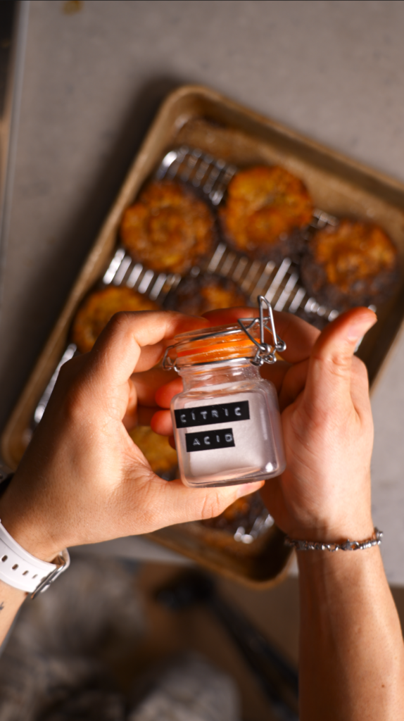 • Transfer to a rack and immediately season with kosher salt and a pinch of citric acid.
