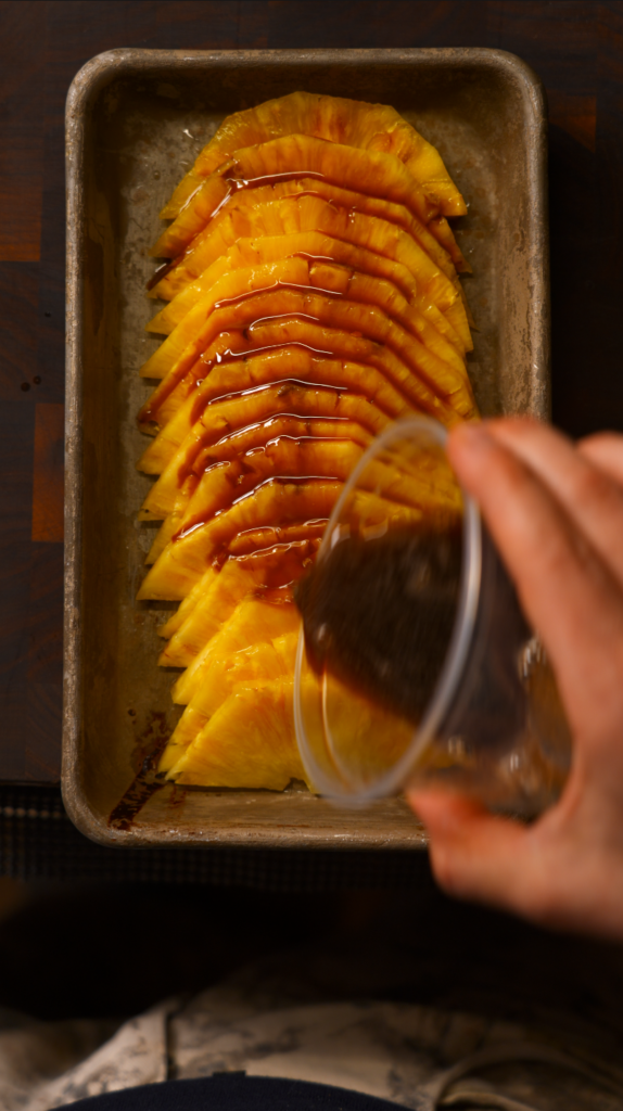 Mix the soy sauce and brown sugar and brush over the pineapple.
