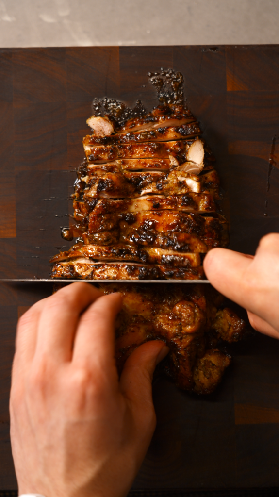 Reserve about 120 g or 1/2 cup of unused marinade for finishing the chicken later.