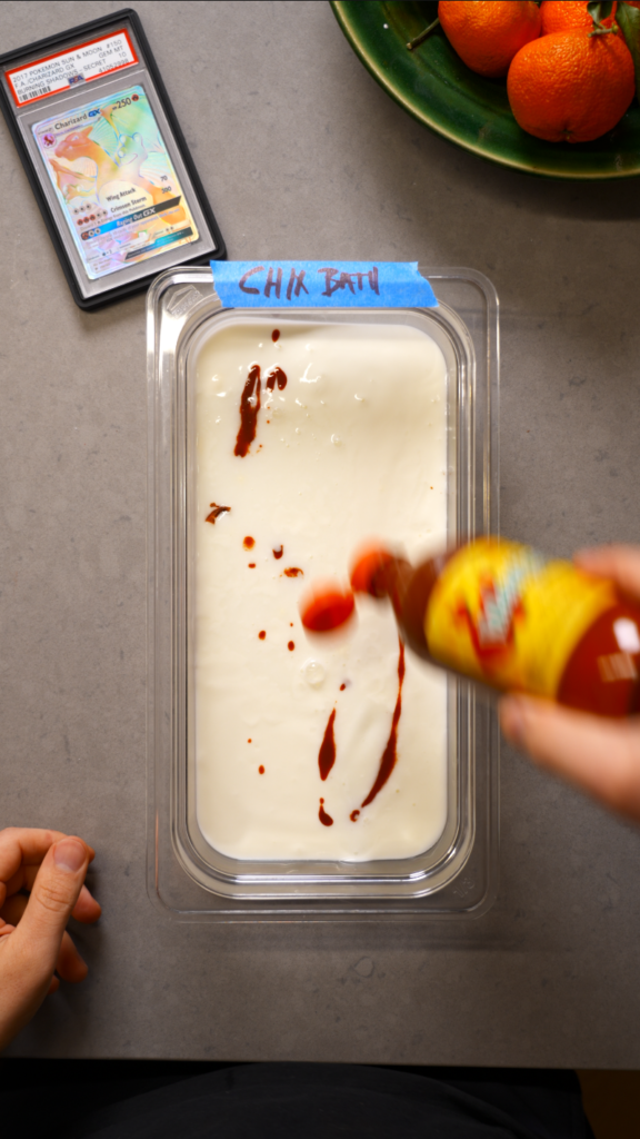 - Whisk together buttermilk, hot sauce, and salt. Add the pressed chicken and marinate for at least 30 minutes, or up to overnight for deeper flavor.