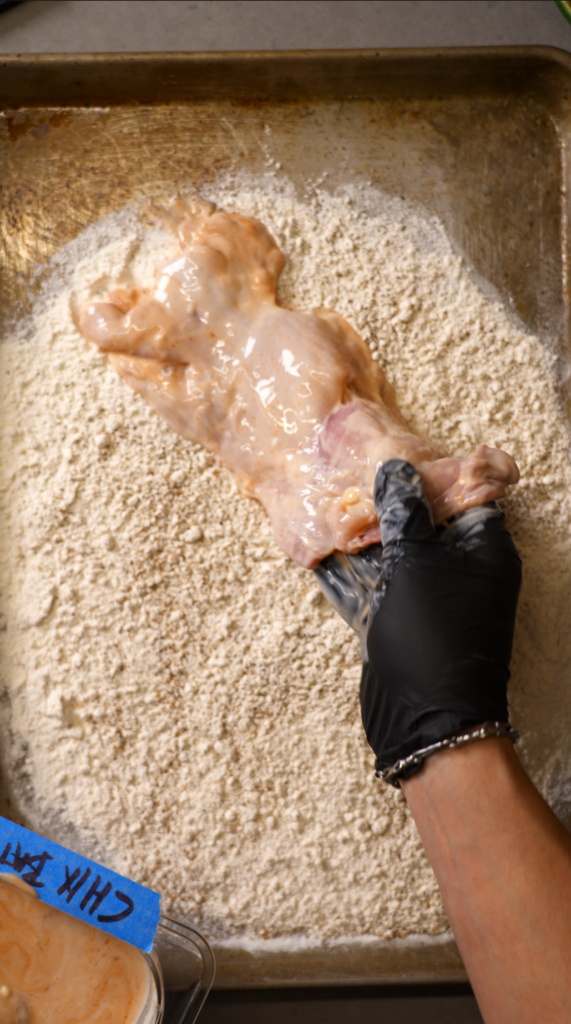 - Rest the dredged chicken before frying. It helps adhesion.