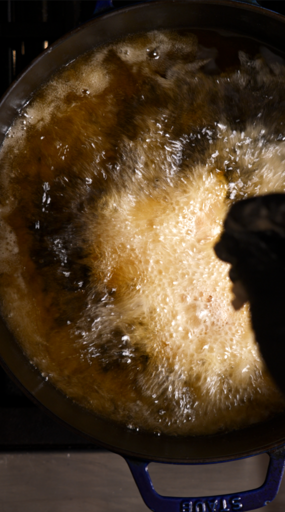 - 4 to 6 ounces hot fryer oil | 120 to 180 g