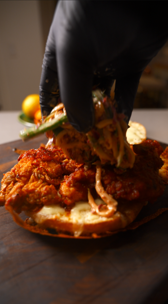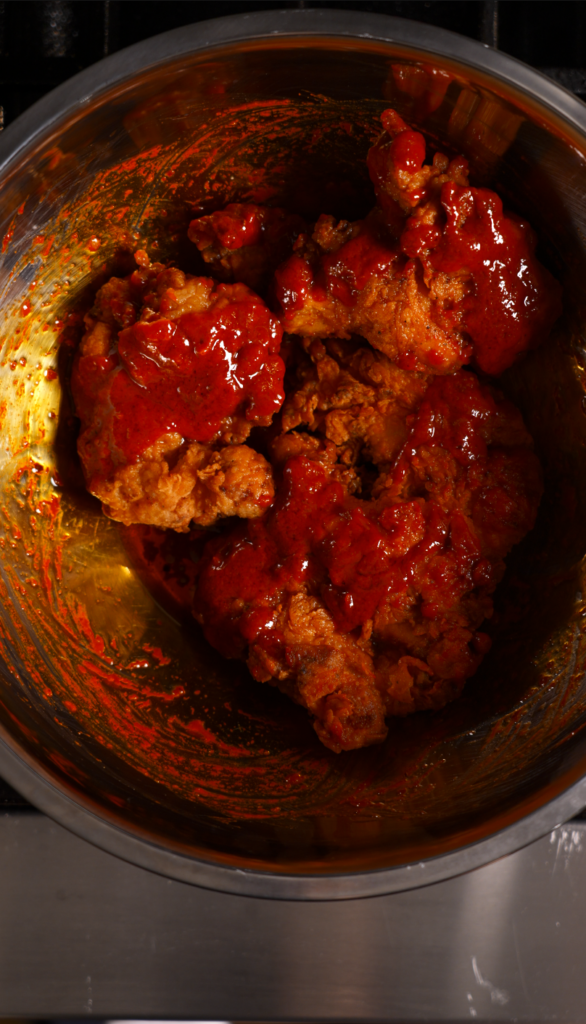 It pulls inspiration from Nashville hot technique and Korean fried chicken flavor.