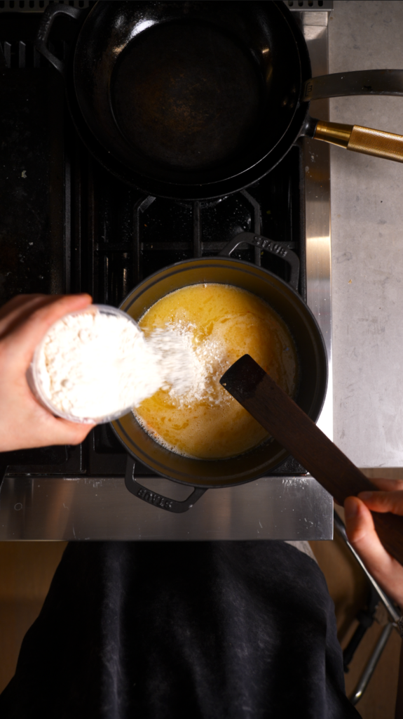 Add flour and stir aggressively until it forms a smooth paste and pulls from the sides. This is your pâte à choux base.