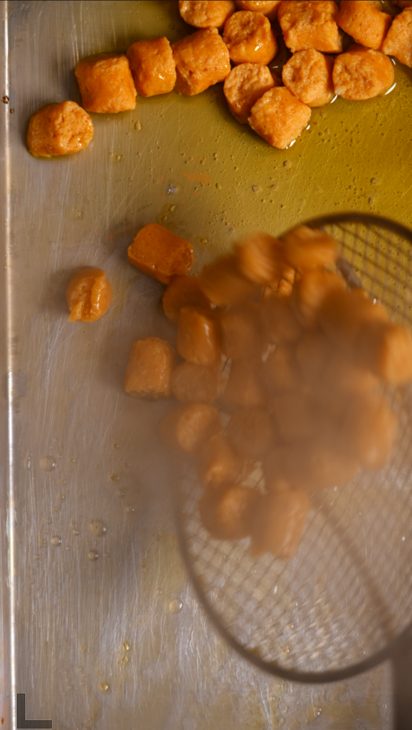 Once they float and cook through, remove with a spider and transfer to an oiled sheet tray.