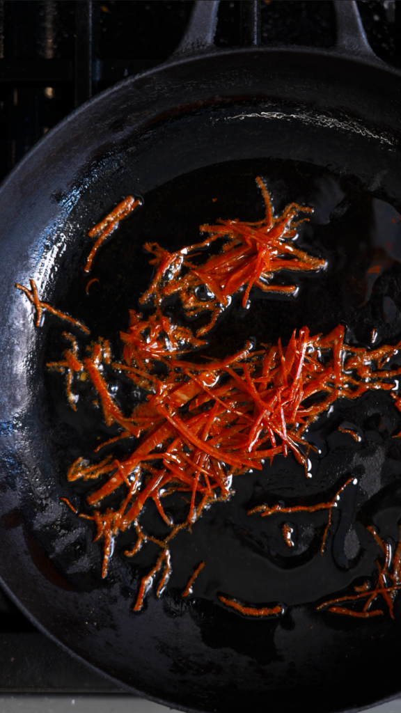- Crisp the Pepperoni and Gnocchi. In a skillet over medium heat, render julienned pepperoni in olive oil.