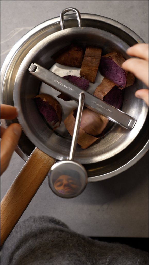 - 300 g roasted Japanese purple sweet potato flesh about 2 medium potatoes