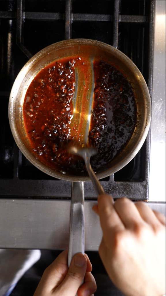 Once crispy, add the honey and stir to combine. Let it simmer briefly until thick and glossy.