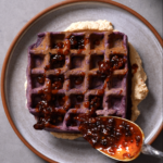 Purple Sweet Potato Waffles With Chorizo Honey and Sambal Ricotta