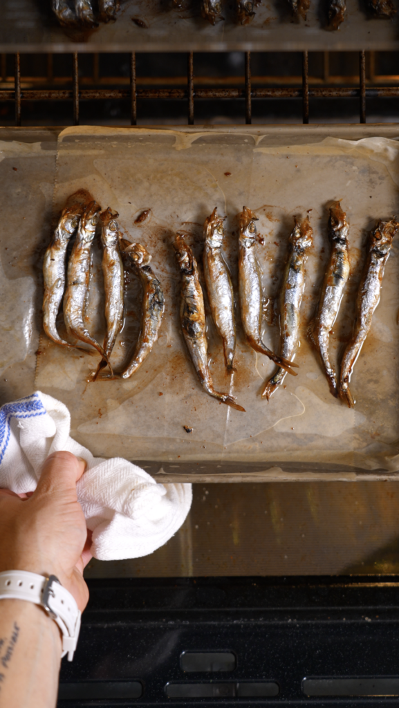Prep and Roast the Smelt: Lay the smelt on a parchment lined tray.