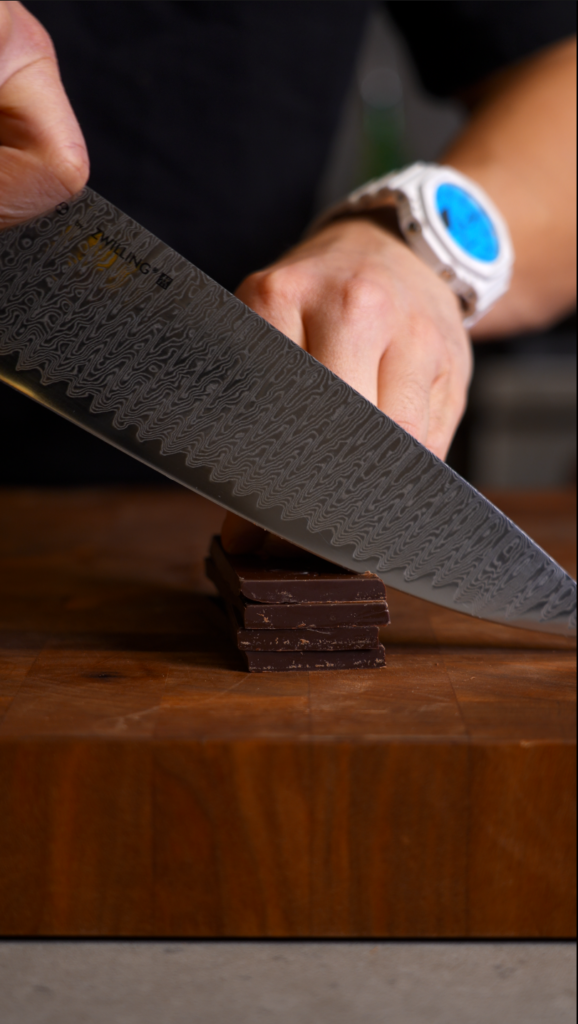 Add the toppings: Roughly chop the dark chocolate.