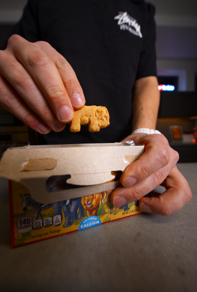 Instead of Biscoff or coconut cookies, I went with something more playful and honestly better in this format. Animal crackers.
